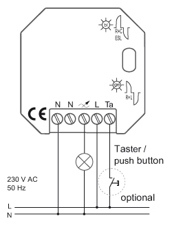 | Operating modes | dim with memory (2- and 1-button operation) dim w/o memory (2- and 1-button operation) dim by external button (1-button operation) control fixed brightness levels (2- and 1-button operation) |